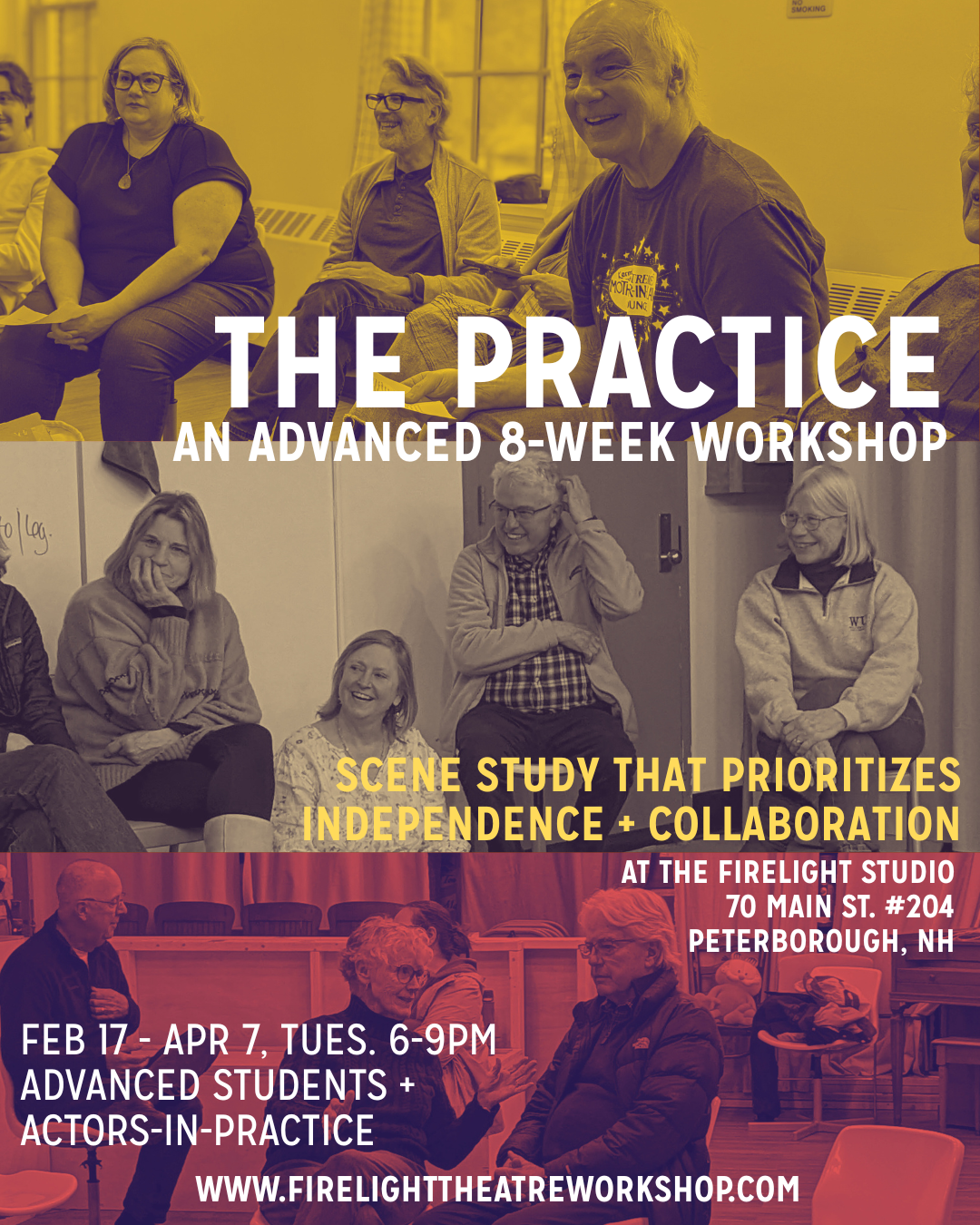 The Practice is a new program at Firelight, in which we invite advanced participants the opportunity to accelerate and deepen their scene study. The goal for us at Firelight is to offer more independence and rigor for students who want to develop + hone an ongoing practice.