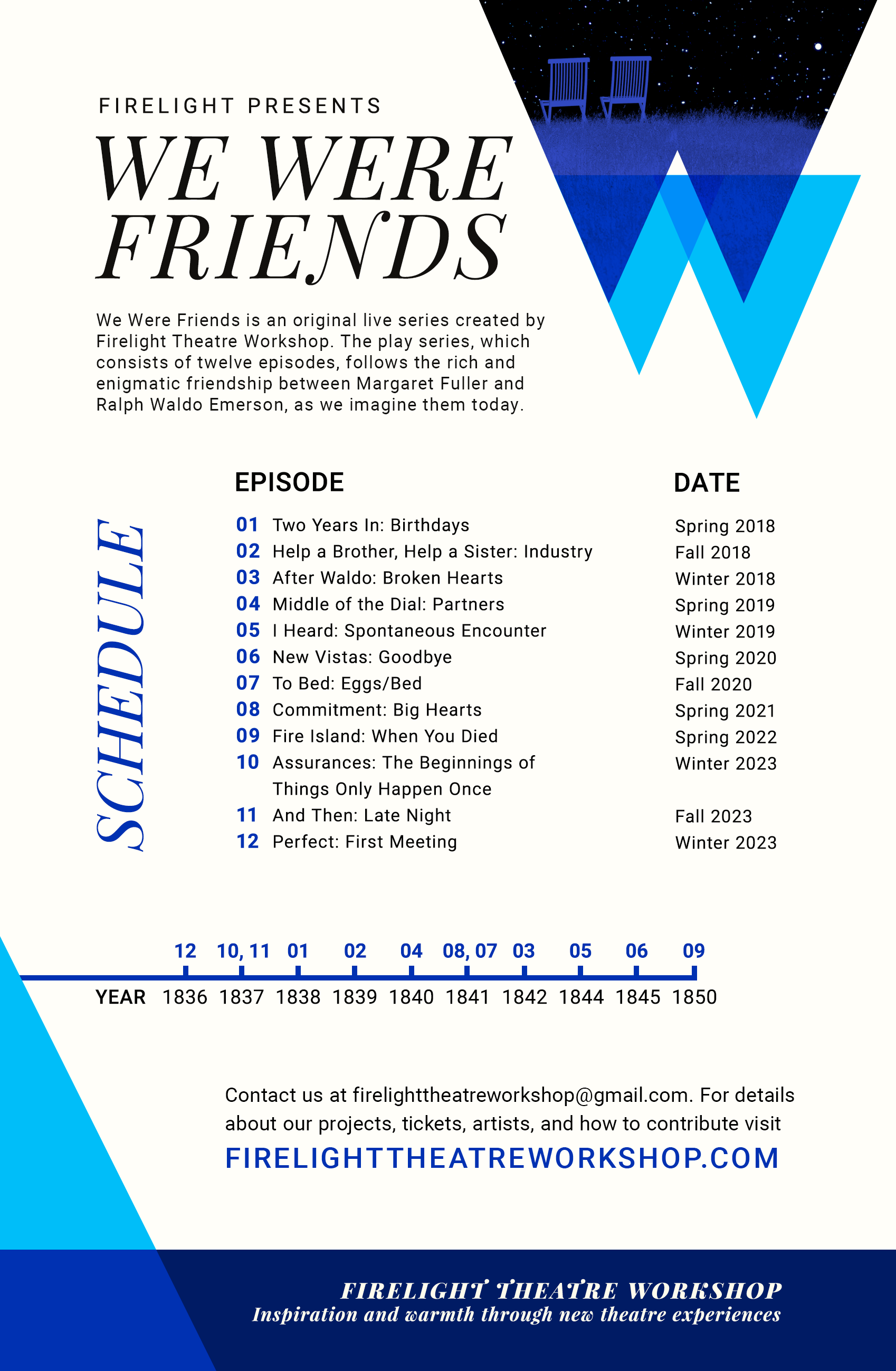Live theatre is ephemeral. But let us try to give you a sense of We Were Friends. We want to share the hows + whats + whys of each episode with you, Reader! We’ll share one: